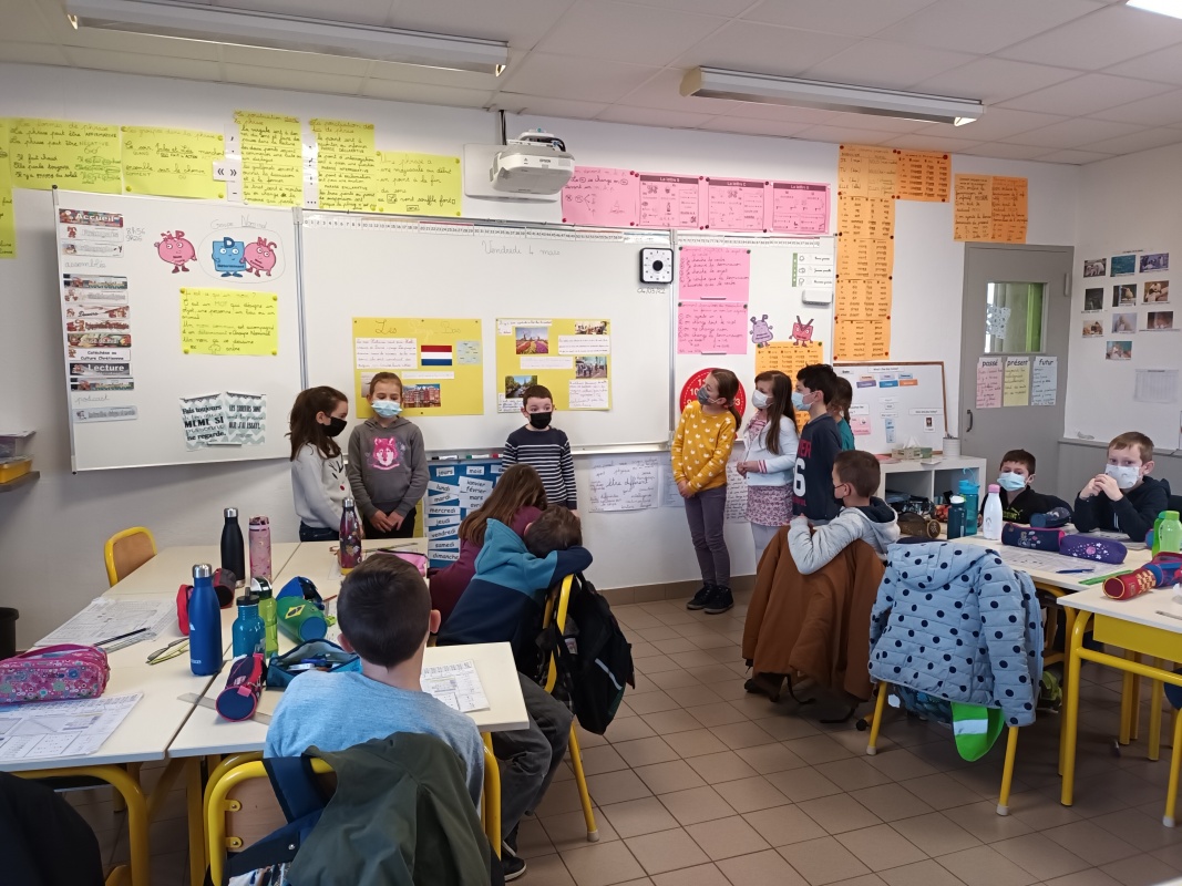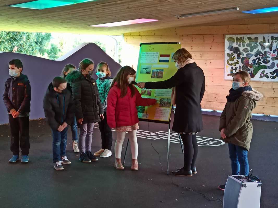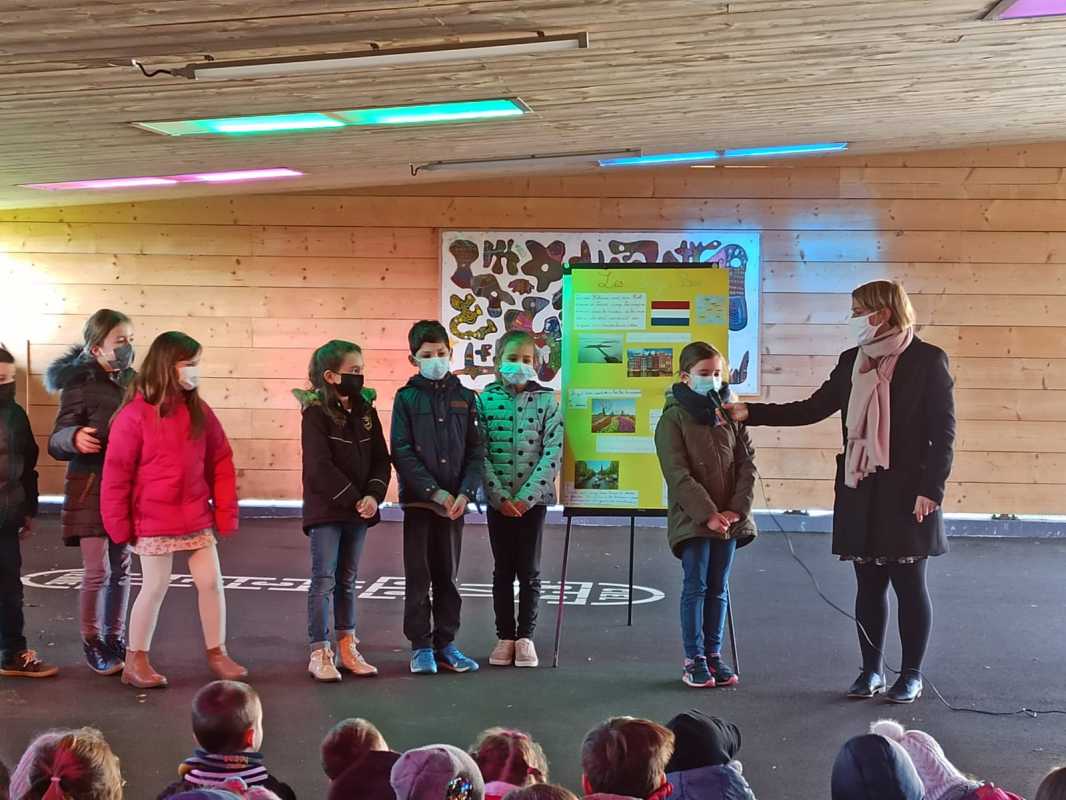 Vendredi dernier, nous avons participé à une assemblée qui clôturait notre « semaine des langues ». Les CE2 ont présenté l’exposé qu’ils avaient préparé suite à l’intervention d’Adol sur les Pays-Bas. Ils ont pu apprendre des mots, des habitudes, des traditions de tous les autres pays dans lesquels ont voyagé les autres classes. Belle assemblée!