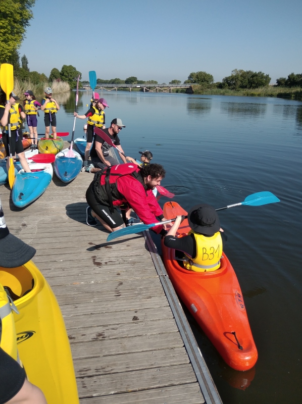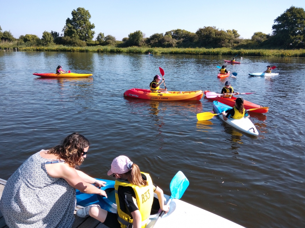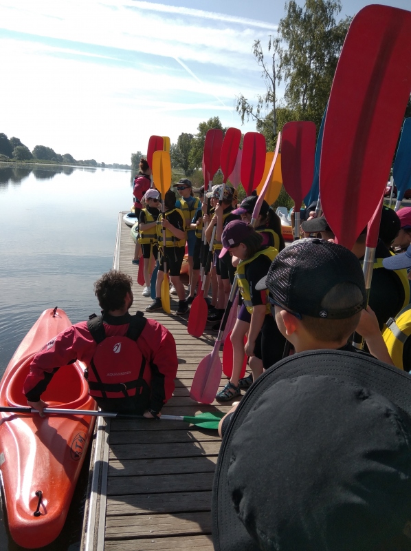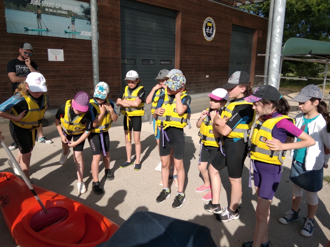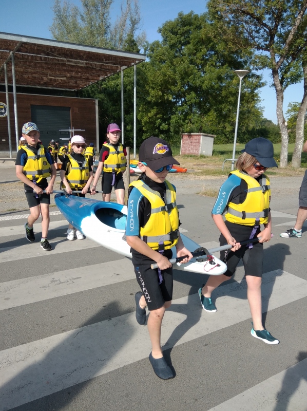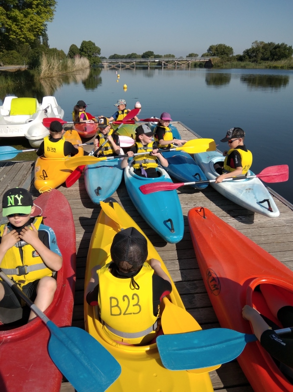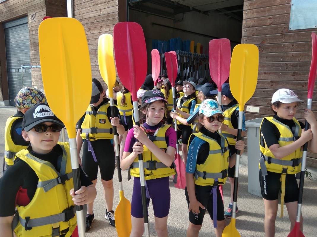 Le mardi 10 mai, les élèves de CM1 se sont rendus au quai vert pour leur première séance de kayak accompagnés par 2 parents. Une magnifique journée ensoleillée pour découvrir cette activité sportive et le canal de la Martinière. Au cours de la matinée, les élèves se sont équipés et ils se sont familiarisés avec le maniement de leur embarcation grâce aux conseils de nos 2 animateurs sportifs, Marine et Kévin. Après une pause pique-nique bien méritée, les élèves se sont exercés sur le parcours qui fera l’objet de l’évaluation : embarquement, slalom, demi-tour, marche arrière, arrêt, débarquement. Nous avons terminé la séance par un jeu. Maintenant, nous avons hâte de nous remettre à l’eau le mardi 24 mai.