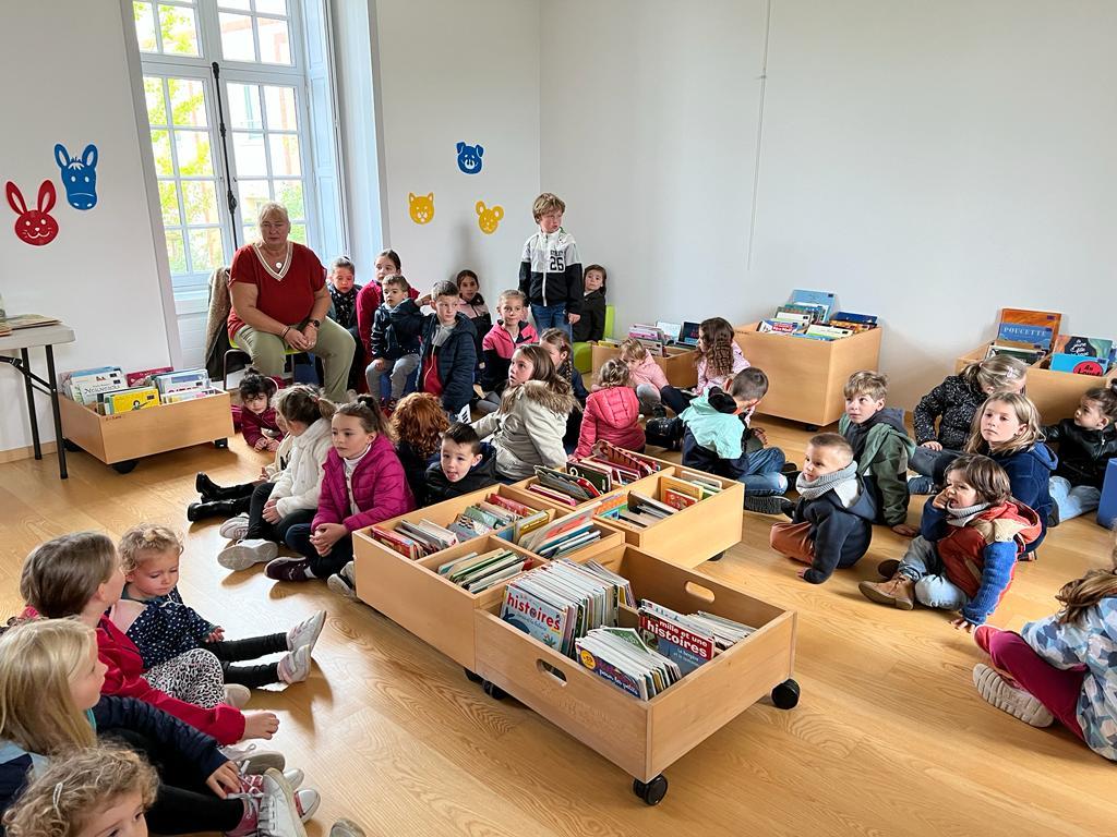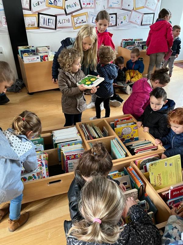 Lundi matin, nous sommes allés à la médiathèque avec nos filleuls. Les CE2 et leur filleul ont exploré la salle consacrée aux albums de littérature de jeunesse. Puis les élèves de petite section ont choisi des livres que les grands se sont faits un plaisir de leur lire. Ce fut un beau moment de partage et selon les PS « c’était trop chouette ». Vivement la prochaine fois !!